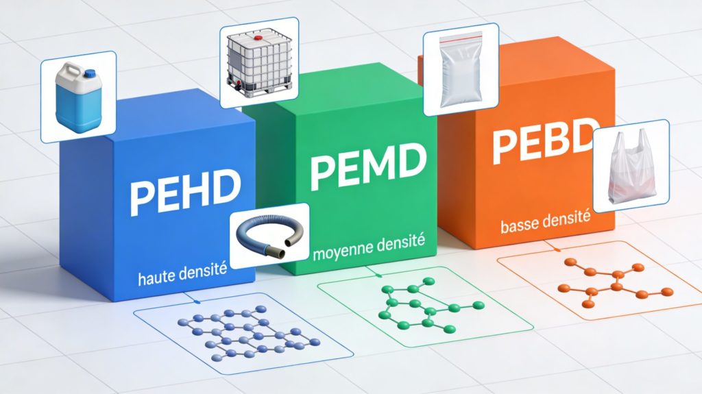 • PEMD (Moyenne Densité) : le juste milieu entre souplesse et rigidité, moins connu mais très utile